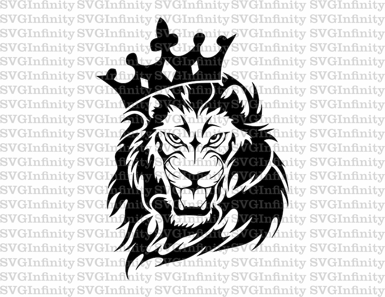 King Lion SVG Lion Head SVG Lion Face SVG Lion in Crown Silhouette