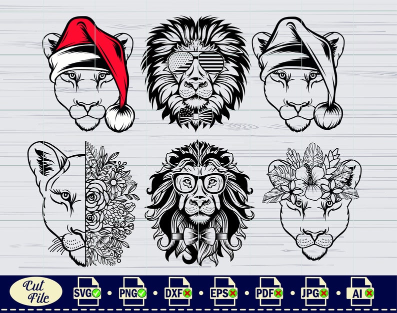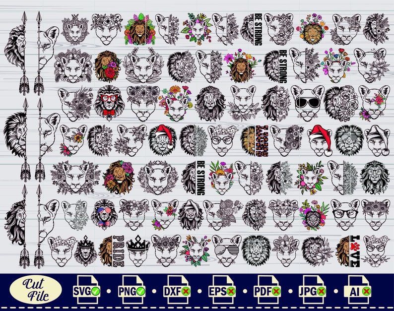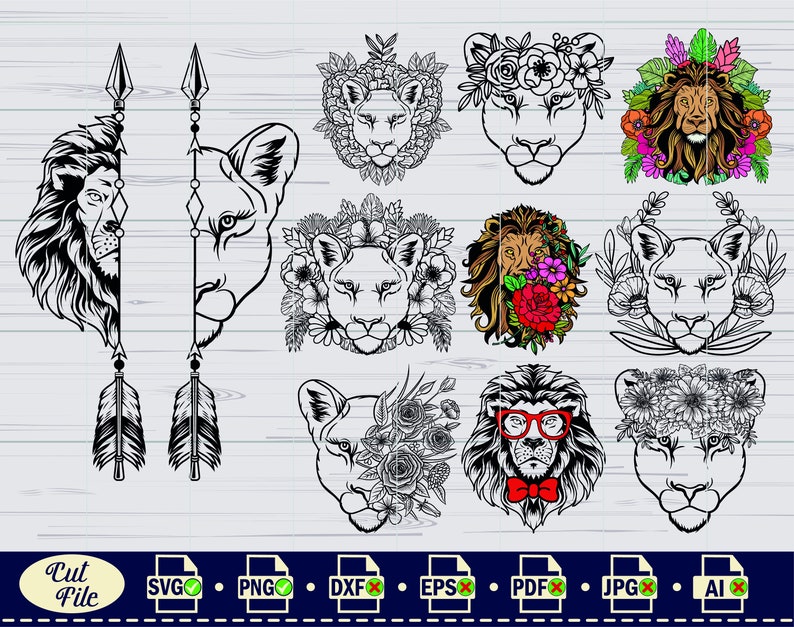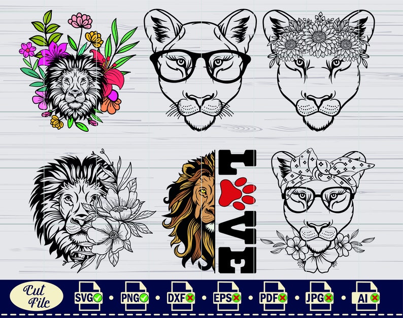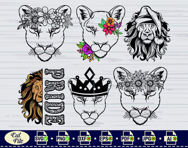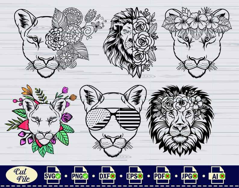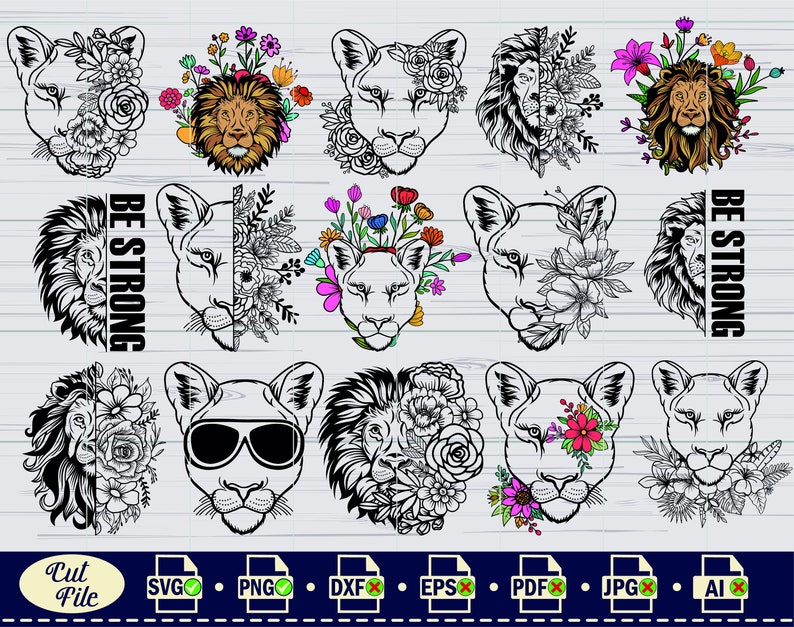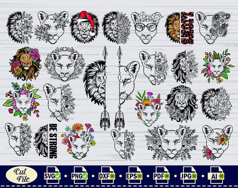 Lion Svg Lion With Flowers Svg King Lion Svg Half Lion Face Svg Lion Head Svg