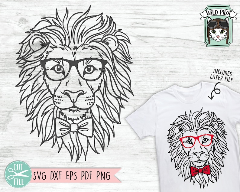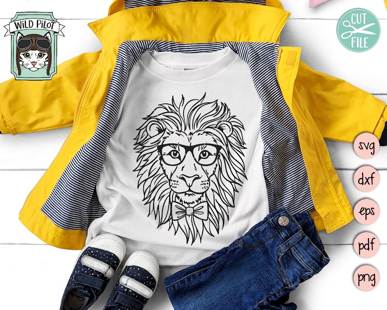 Show your team spirit by making a shirt using our cut files!Lion with Glasses Bowtie svg Cute Lion Face svg Lion Face Svg